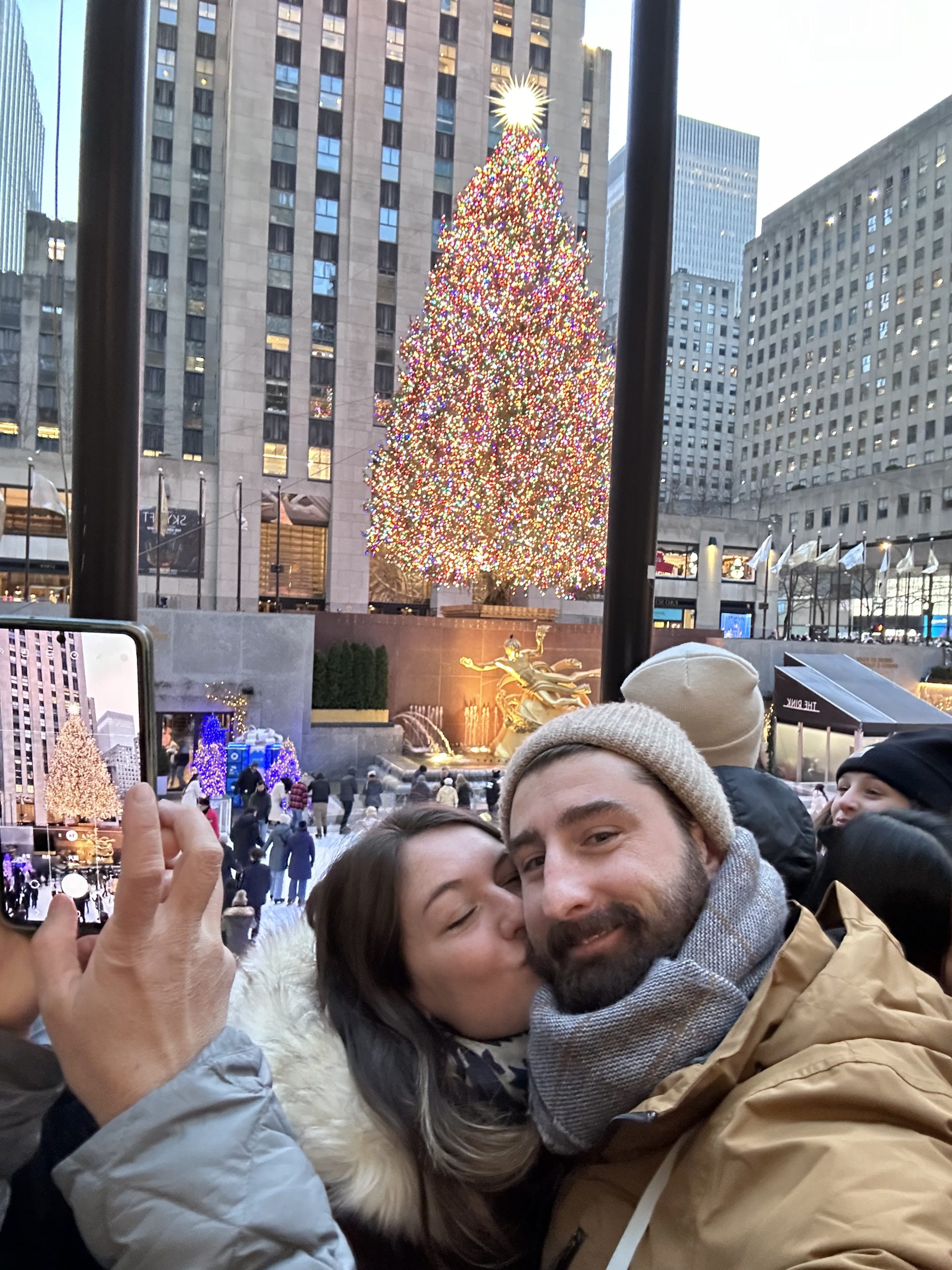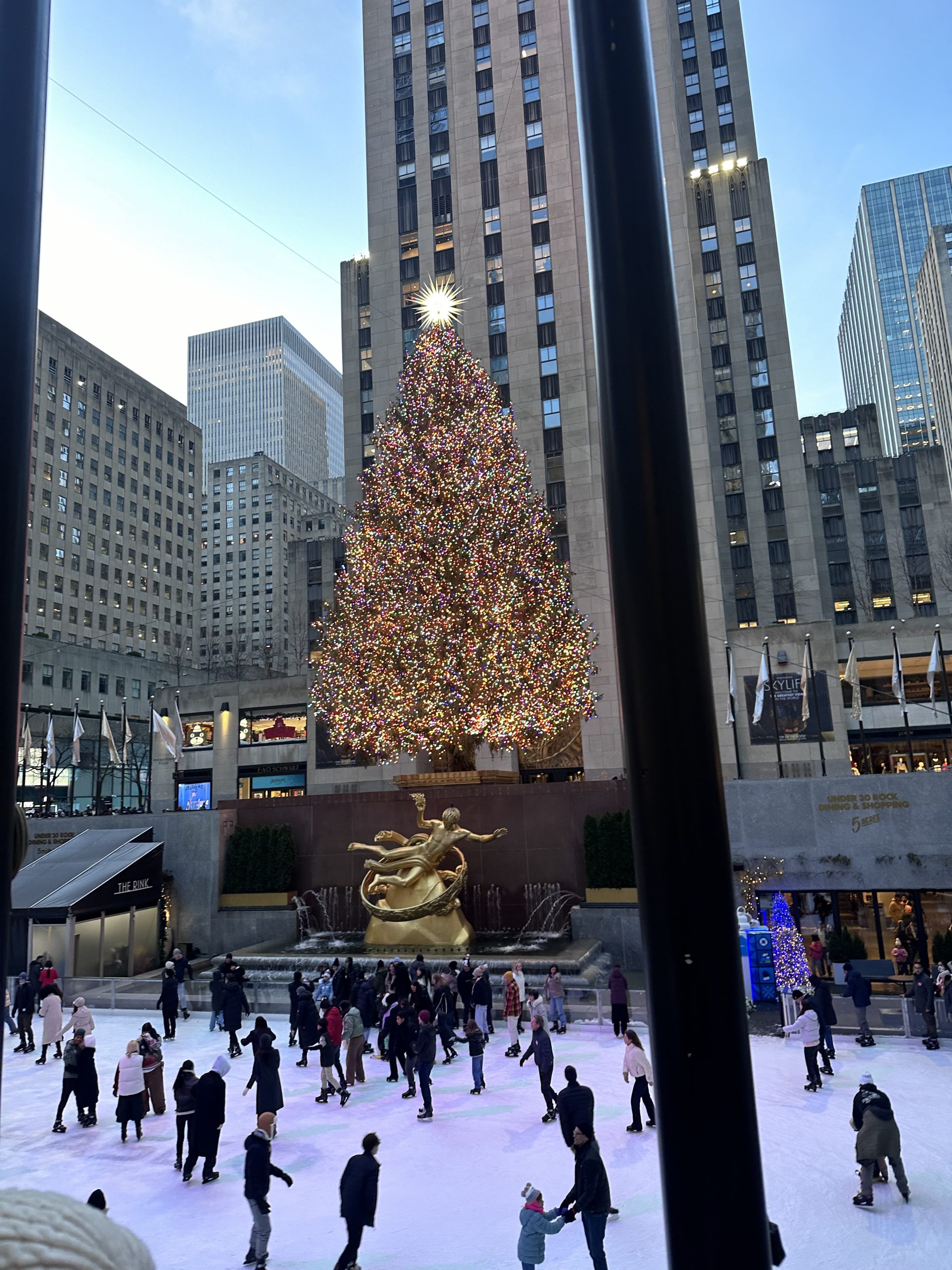 LE LIEU de rendez-vous en période de fête ! Le Rockefeller Center accueille son sapin géant connu mondialement qui rassemble des milliers de personnes chaque année le jour de l’illumination. C’est un événement très attendu qui annonce le début de la période de Noël. Nous y sommes allés un 24 décembre, il y avait tellement de monde qu’on a vu qu’une partie du sapin et de la patinoire située devant. ici se trouve aussi Radio City, l’un des bâtiments emblématiques du complexe Rockefeller. Elle est surtout connue pour « The Tonight Show Starring Jimmy Fallon » et ses événements emblématiques comme le Christmas Spectacular. Malgré la foule c’est un passage incontournable si tu viens visiter New-york à Noël.