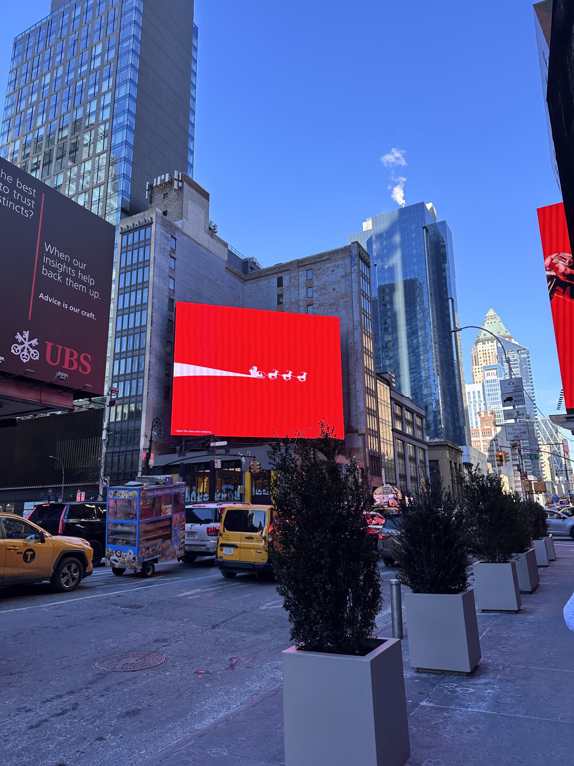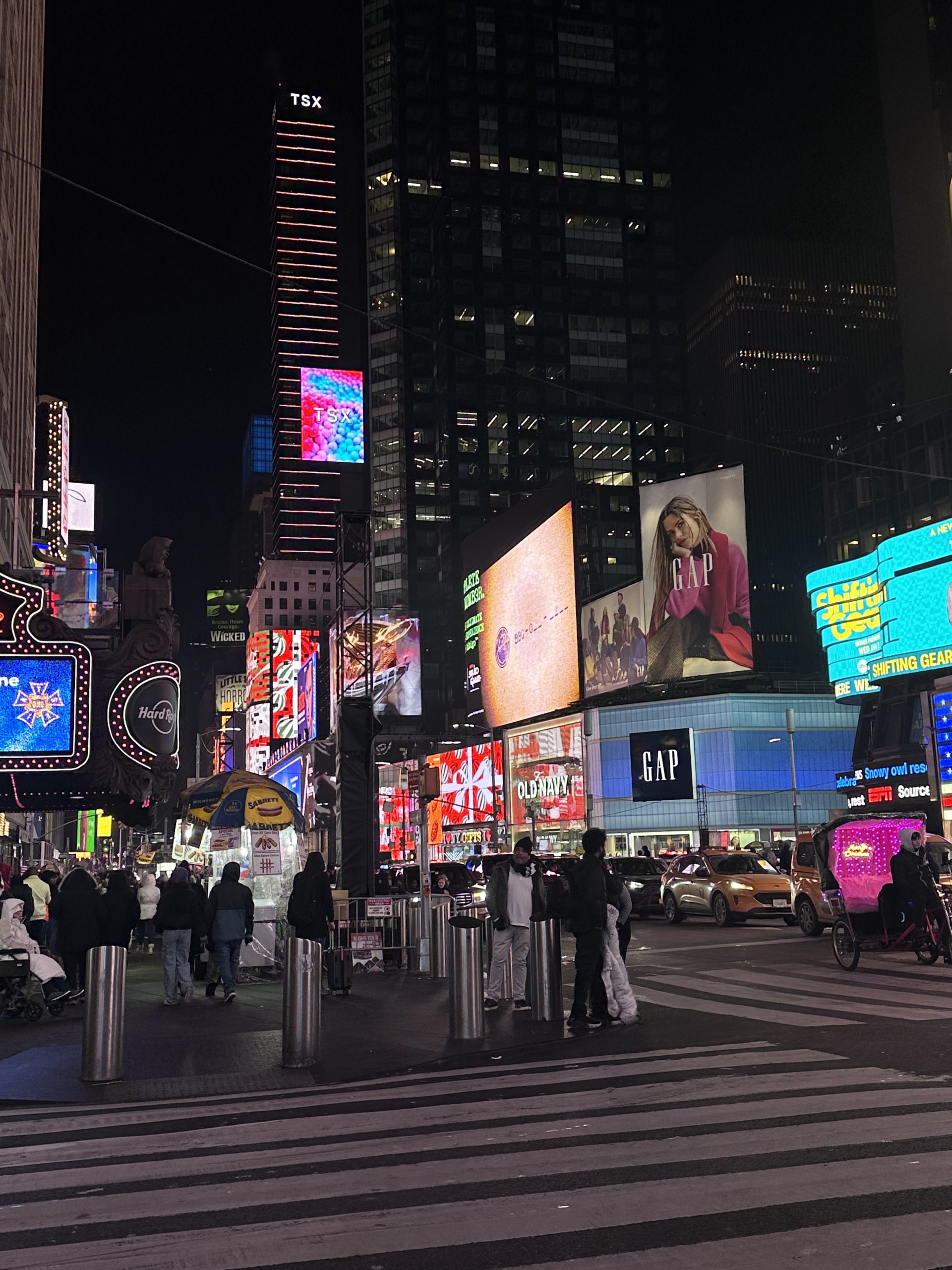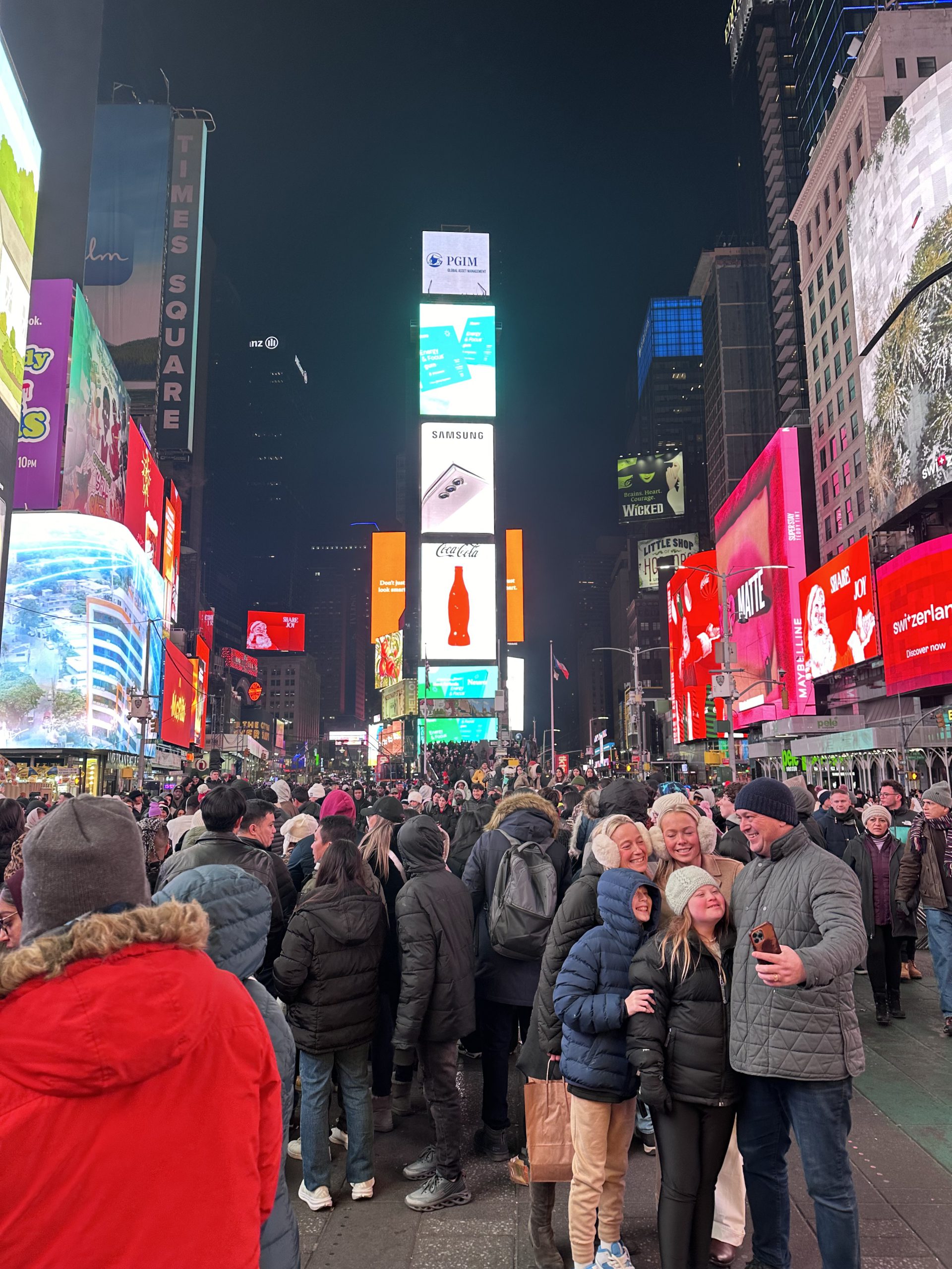 Tu connais, nous connaissons, Times Square endroit mythique où lumières, écrans géants et foule créent une ambiance dynamique 24h/24. Surnommé “le carrefour du monde”, c’est l’un des endroits les plus visités de la planète. En période de fête c’est bondé et magique ! Les décorations, les vitrines des magasins…